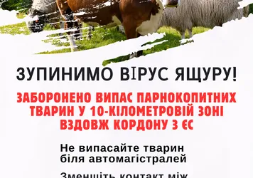 Для захисту від ящуру заборонено випас худоби в 10-кілометровій вздовж кордону